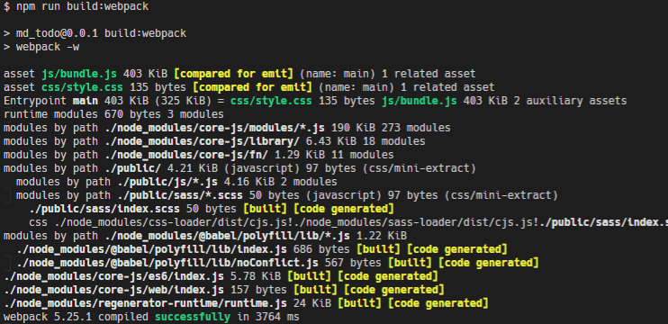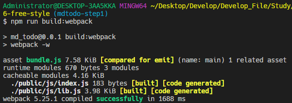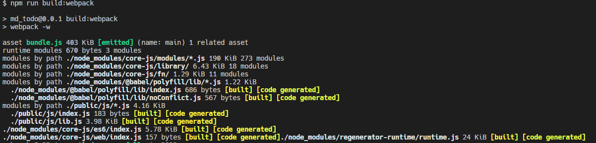 여기까지 작성했다면, Webpack을 실행하여 트랜스파일링 및 번들링을 실행.